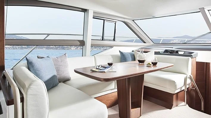 Stylish and technically advanced, the new F50 features a sophisticated standard of refinement with new style helm seats, transom gates and the Princess logo on the bathing platform. Featuring a luxurious full beam master stateroom, a forward cabin and an additional twin guest cabin, space on-board has been carefully considered. The overall design aesthetic is classically Princess, with elegant fabrics and materials; new saloon and stateroom sofas, plus Perrin and Rowe sinks featuring in the two lower deck bathrooms. The refined F Class range includes fresh off-white, pale grey and taupe line-out materials that act as a neutral background and complement all wood selections. Designed in collaboration with the Princess Design Studio and Princess’s longstanding naval architects, Bernard Olesinski, the new F50 delivers outstanding performance.