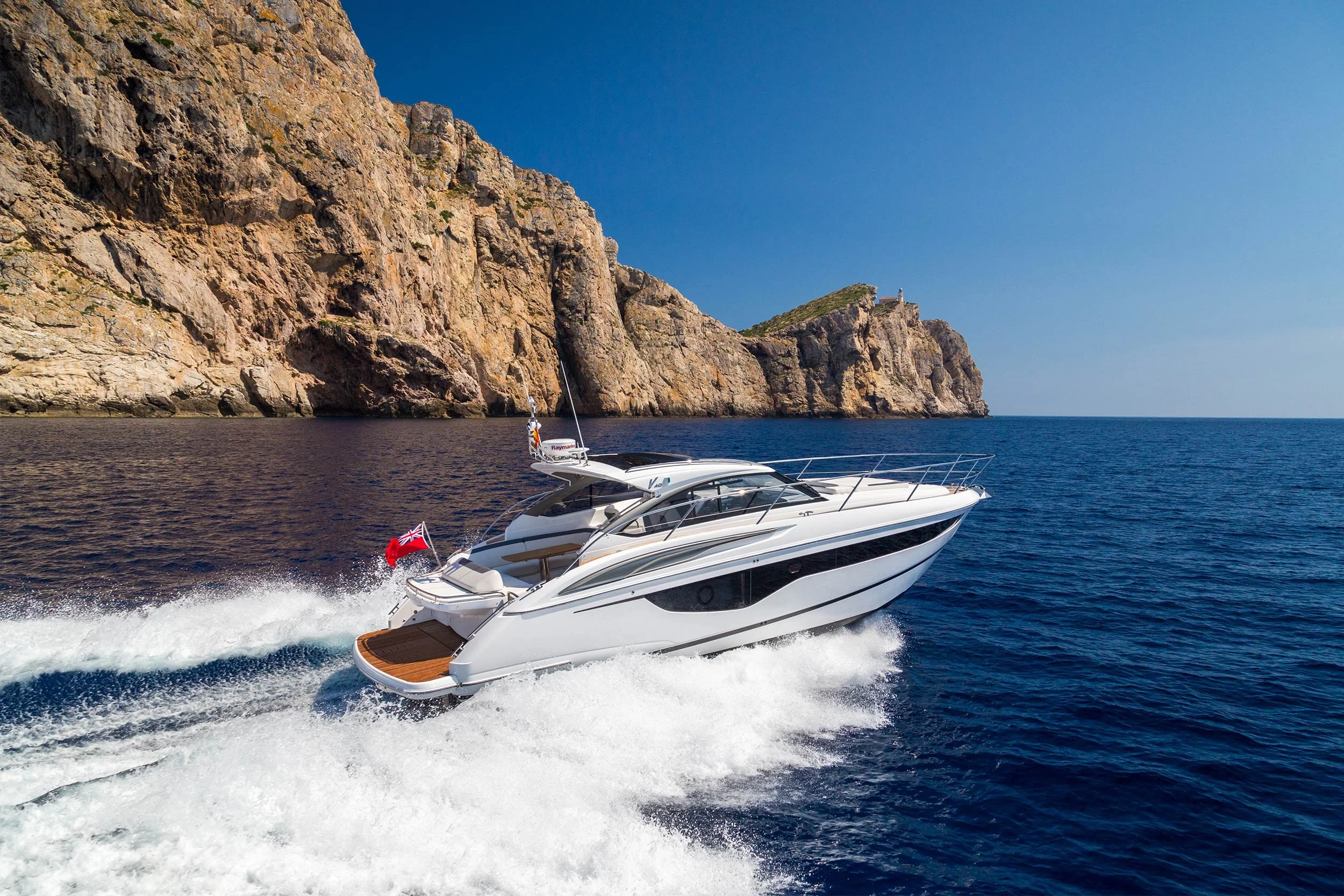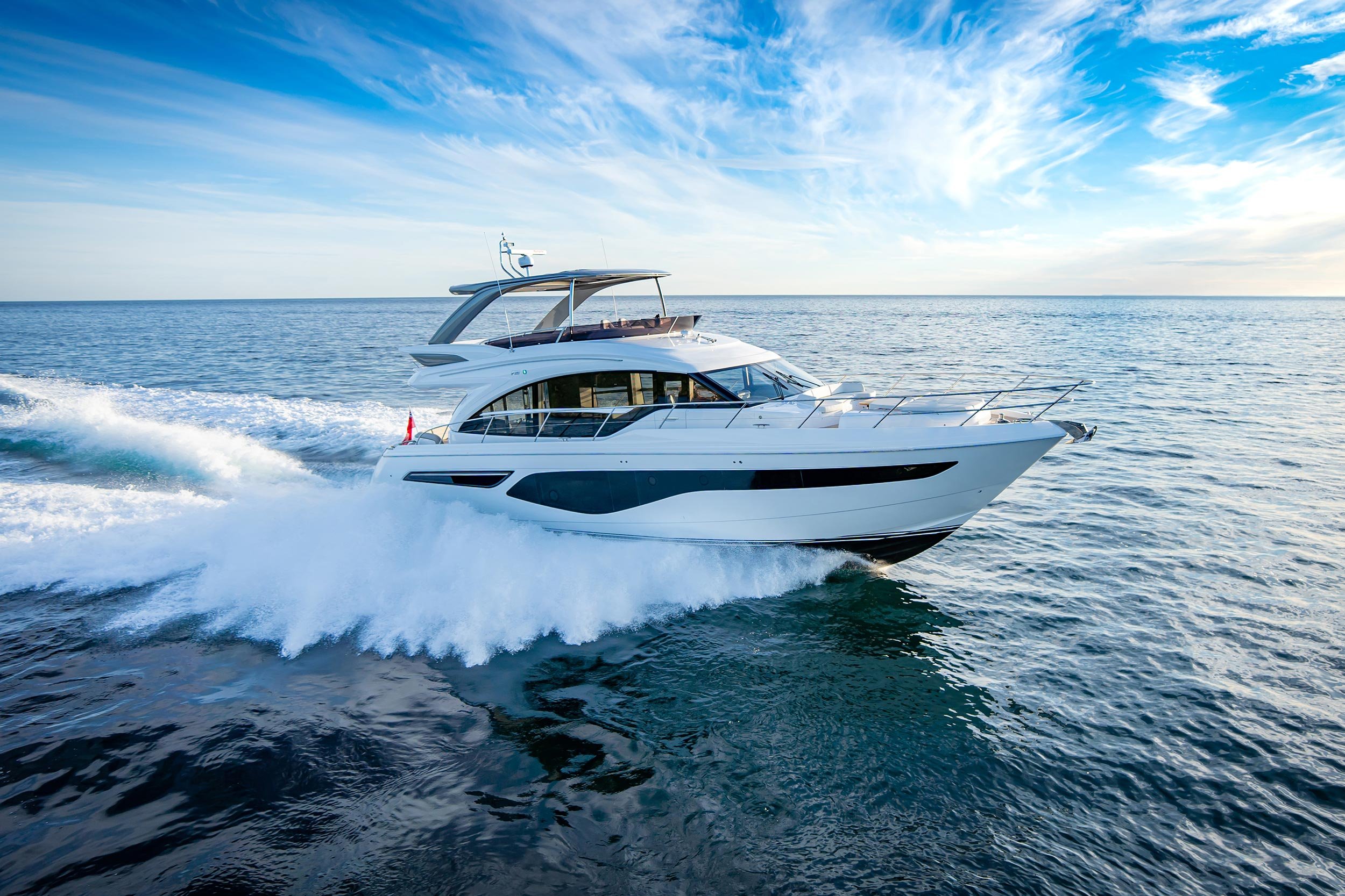 The Princess F50 sits within the class of luxury yachts that first defined Princess as a leading force in the industry, joining the F45, F55, F62 and highly-anticipated F65. She delivers the ultimate on-water experience for a flybridge yacht, with an extreme focus on the use of space and dynamic performance. Stylish and technically advanced, the F50 features a luxurious full-beam master stateroom, a forward cabin and an additional twin guest cabin.